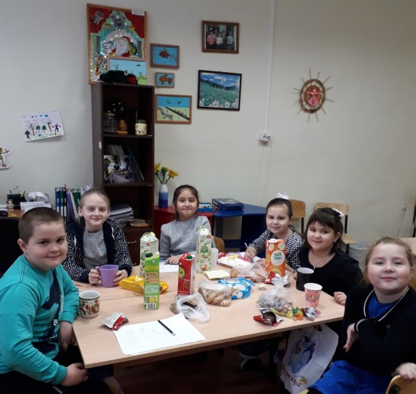 Дети нарисовали рисунки и рассказывали о своей семье, о себе, учились решать ребусы, отвечали на вопросы викторины. Завершилось всё вкусным угощением. Ребята принесли из дома разные сладости и с удовольствием угощали друг друга.